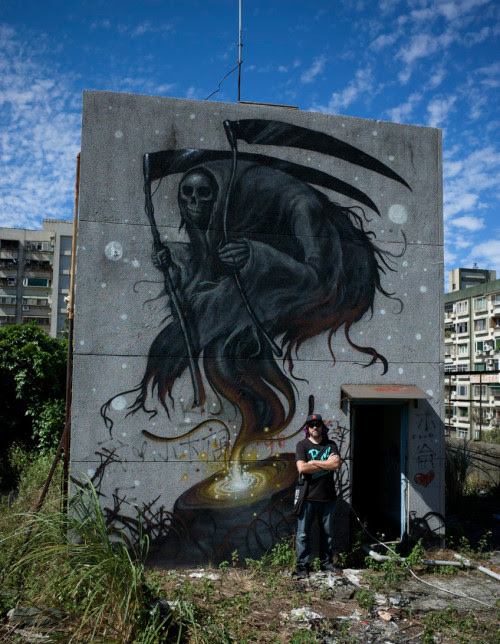 Jeff Soto born Fullerton, CA 1975, is a painter, illustrator, and muralist who has exhibited in galleries and museums around the world. His distinct color palette, subject matter and technique have been said to bridge the gap between Pop Surrealism and Street Art. He is represented in the United States by Jonathan LeVine Gallery in New York City. Follow him on Twitter.